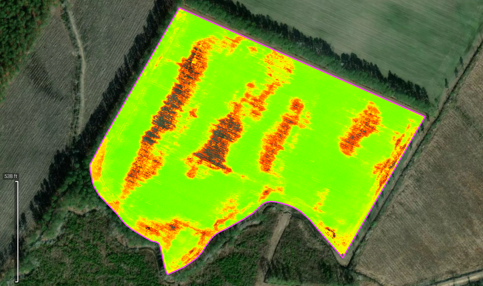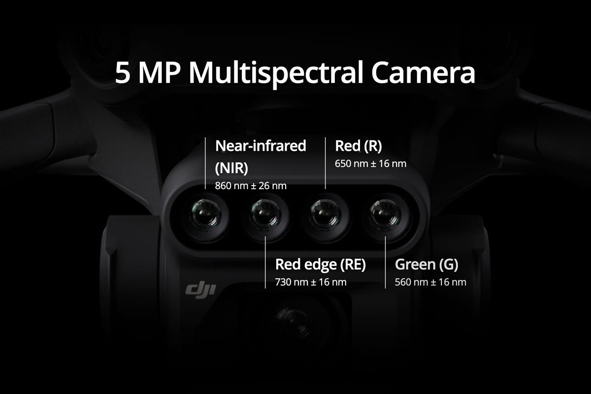 - Multispectral Imaging System – 4-band camera (Green, Red, Red Edge, Near-IR) + RGB for visible scouting
